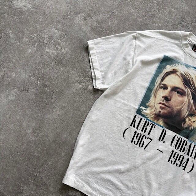 【giant】KURT COBAIN ジャイアント カートコバーン 追悼Tシャツ USA製 半袖tシャツ バンドtee ニルヴァーナ ホワイト ブートレグ (XL)