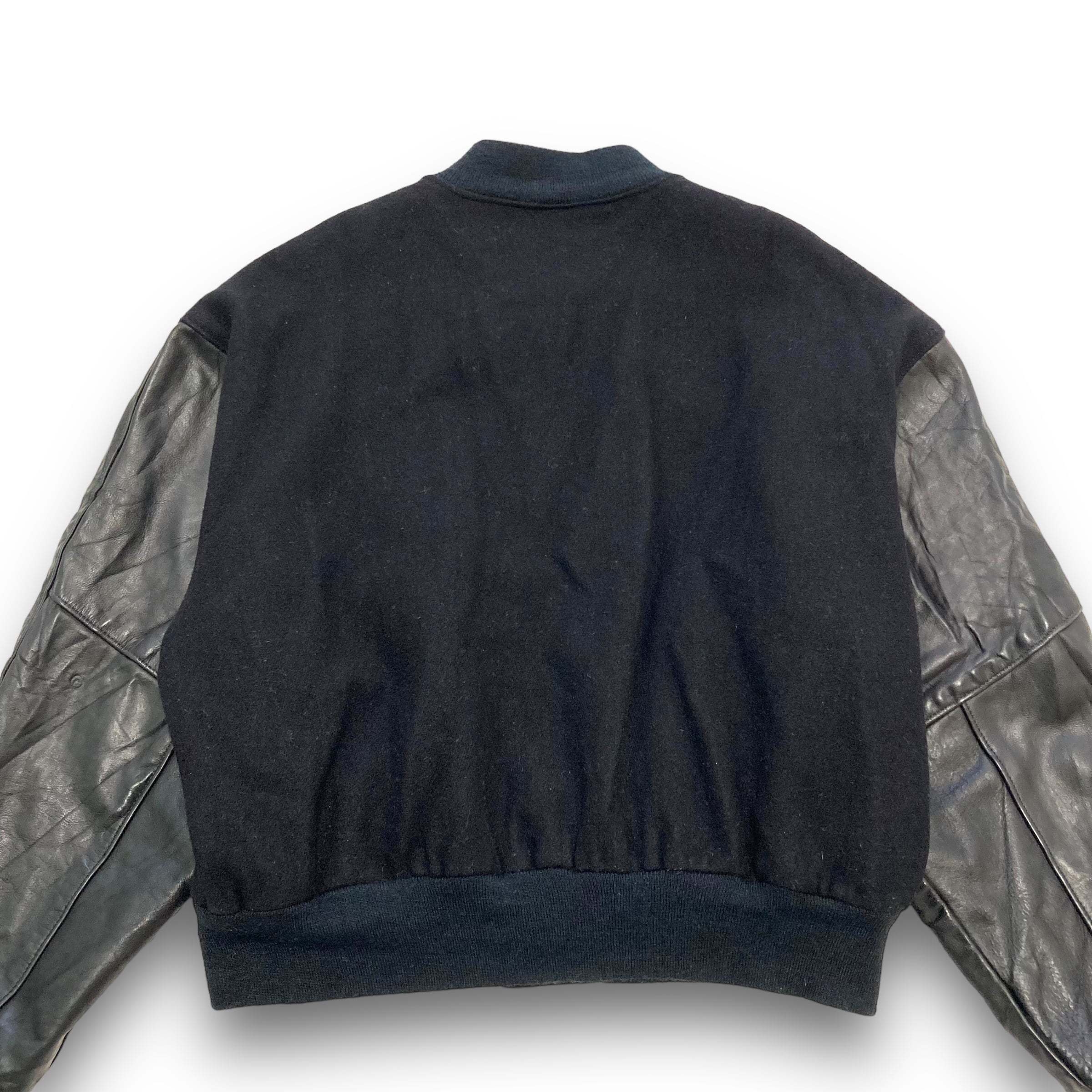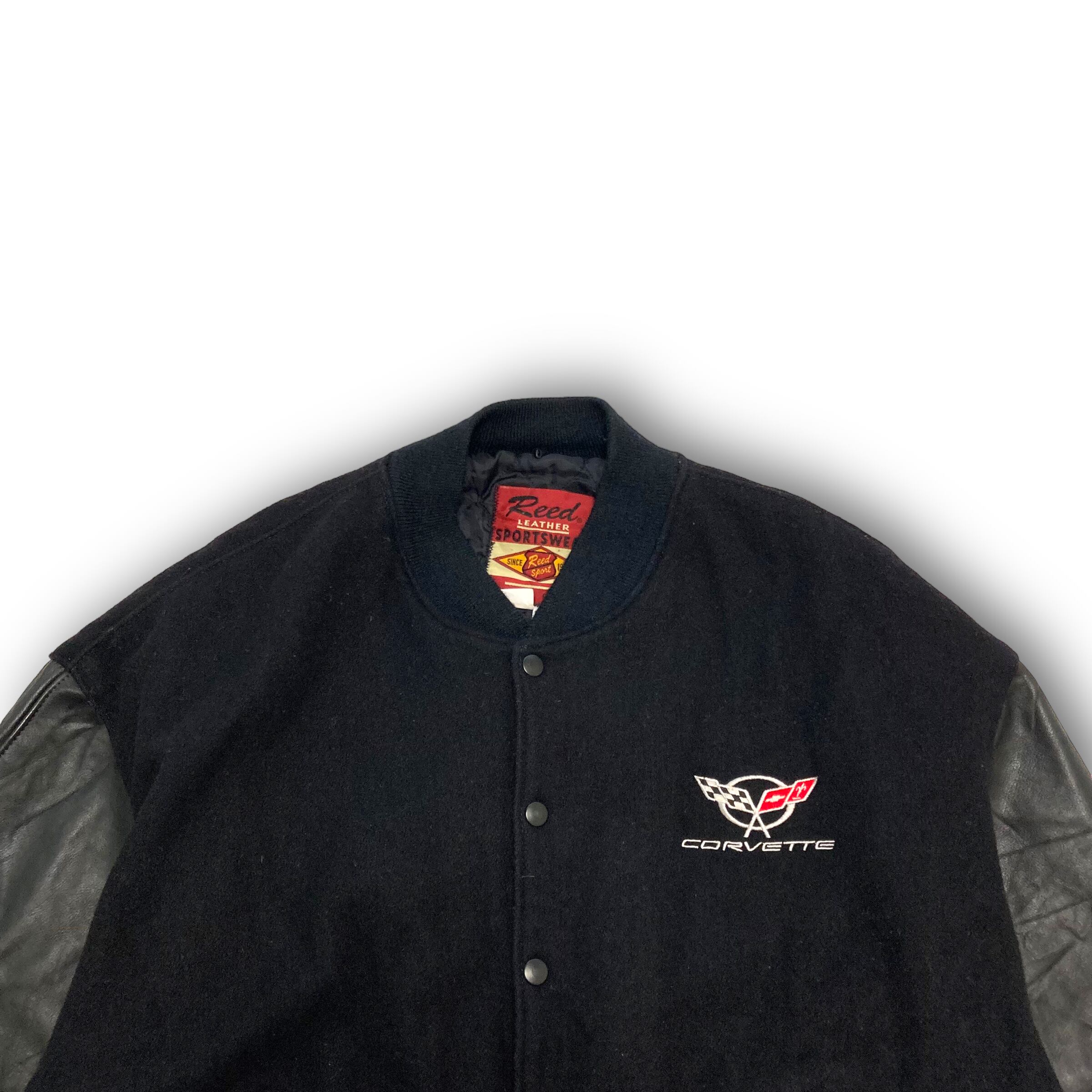 【Reed leather】USA製 袖レザースタジャン バーシティジャケット シボレーコルベット 黒 ブラック
