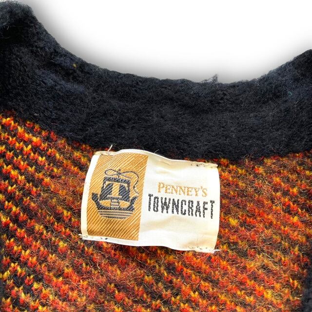 【TOWN CRAFT】タウンクラフト モヘヤ調 カーディガン ヴィンテージ柄