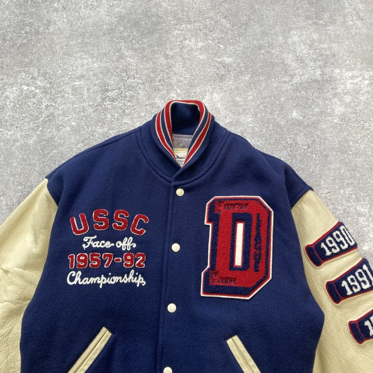このスタジャンは、コレクションとしてもおすすめで、特に90年代スタイルが好きな方にはたまらない存在感を持っています。