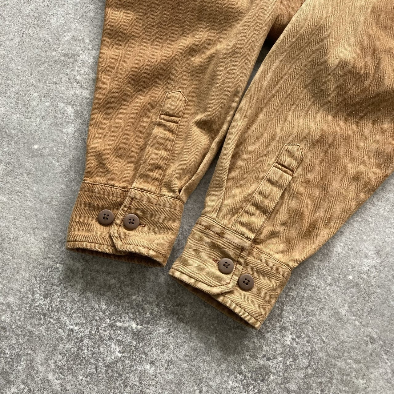 鬼フェードした感じがたまらないコカコーラ社のヘリンボーンストライプ作業着です。