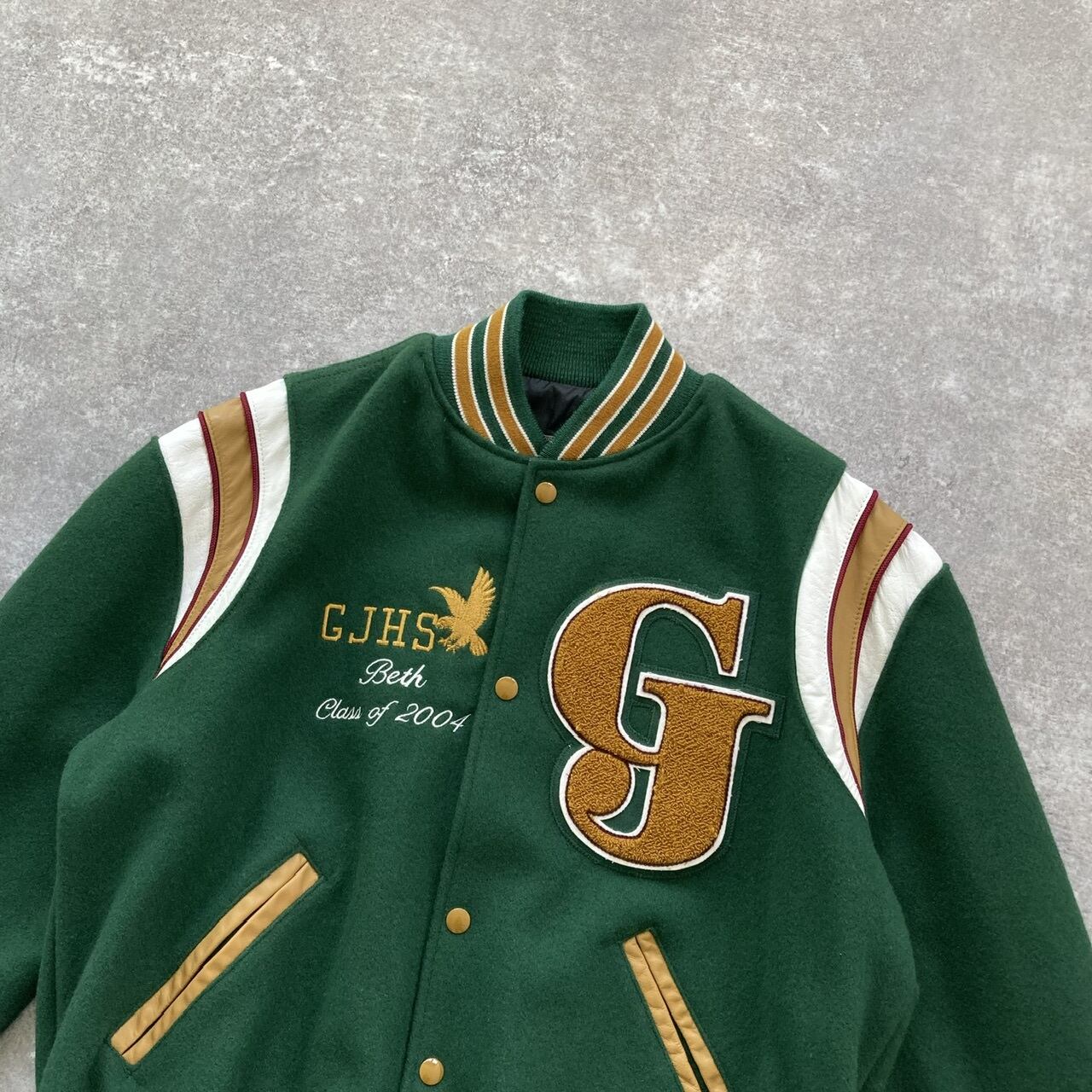 肩部をレザーで仕立てることで、稼働しやすく、理にかなったバーシティジャケット。