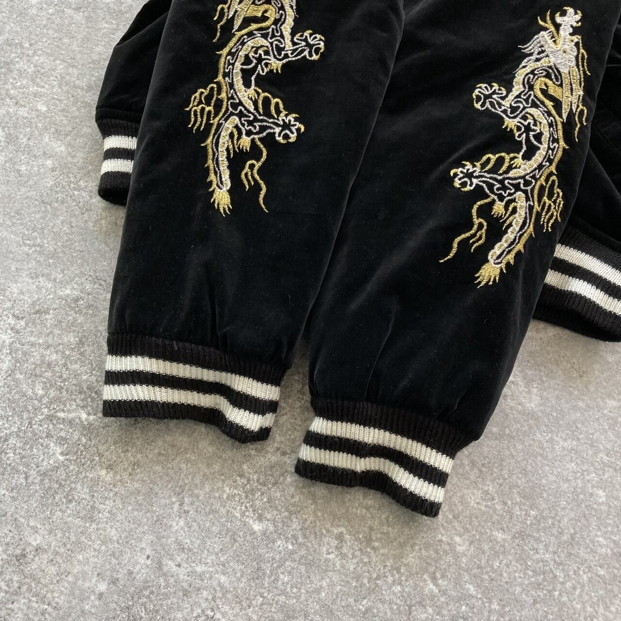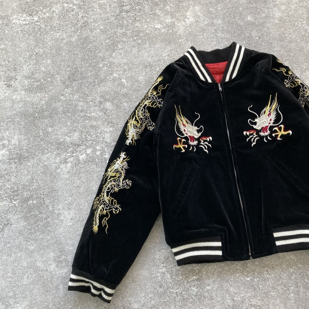 【Vintage】 90s ヴィンテージ ベロアスカジャン 別珍 鷹龍刺繍 黒