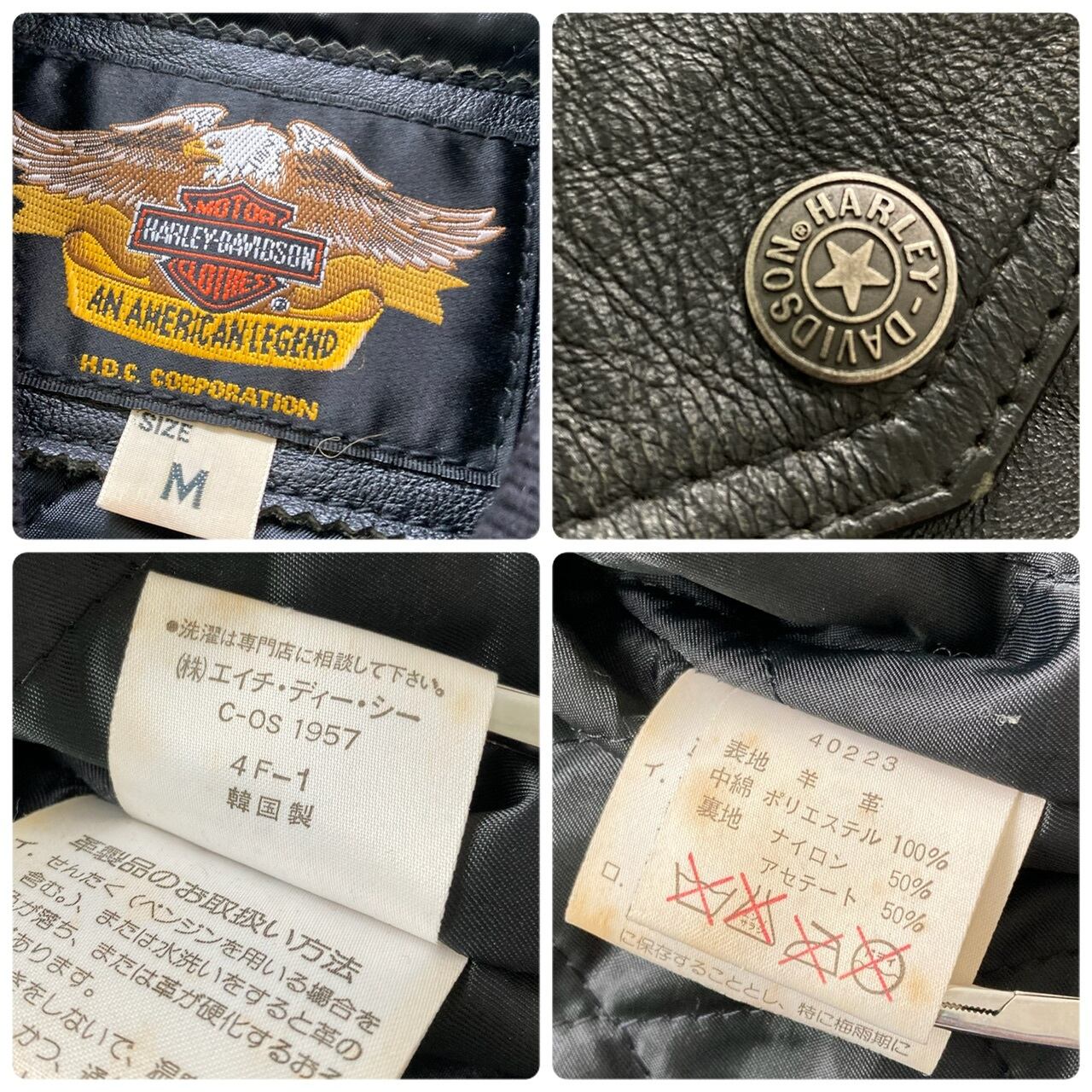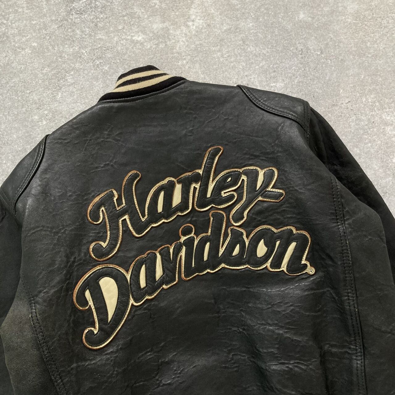 【HARLEY-DAVIDSON】 ハーレーダビッドソン オールレザージャケット 革ロゴ 黒