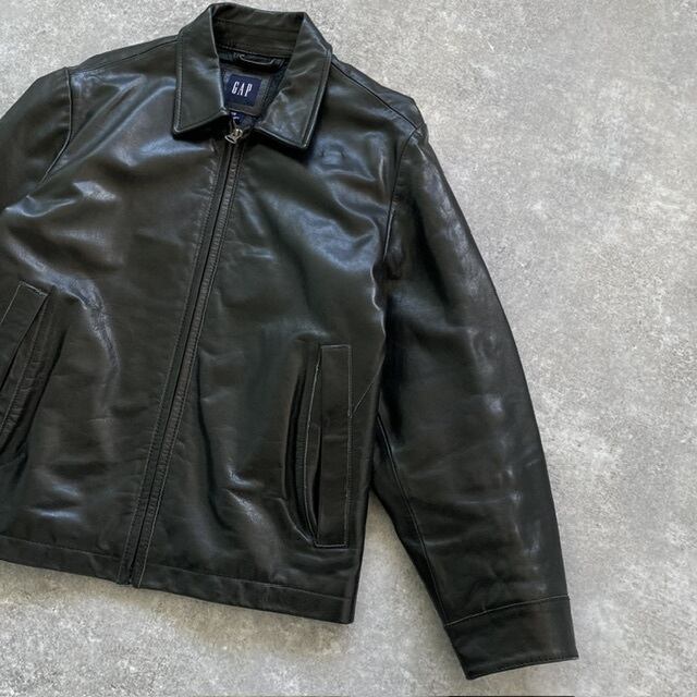 【GAP】 ギャップ 牛革 レザージャケット カウレザー ブラック ジップアップ