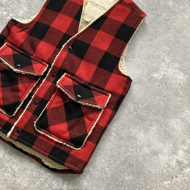 【DENIM&SUPPLY】 ラルフローレン バッファローチェック ボアベスト