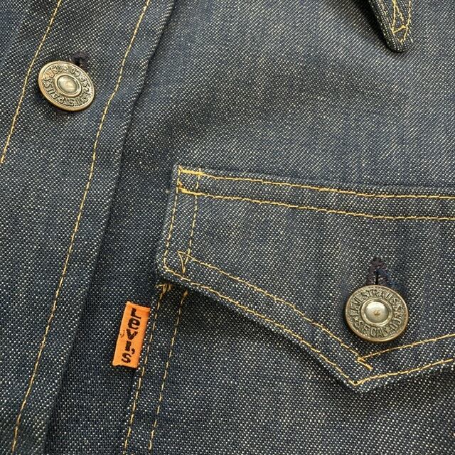 掛けタイプのカッパーボタンにオレンジタブ、ボタン裏刻印はナナマルのUSA製となります。