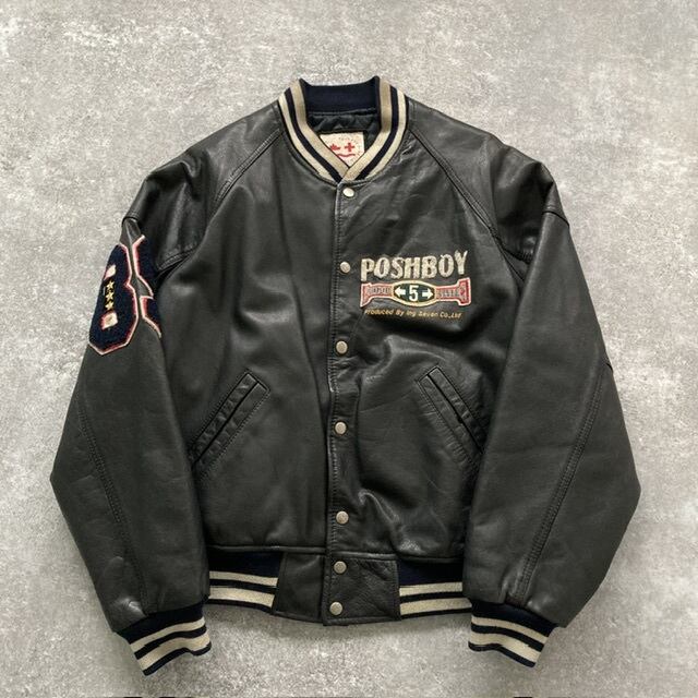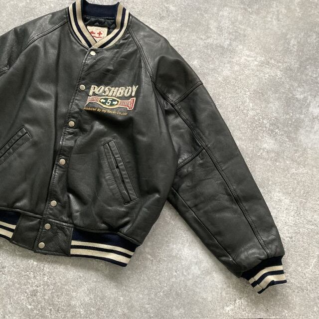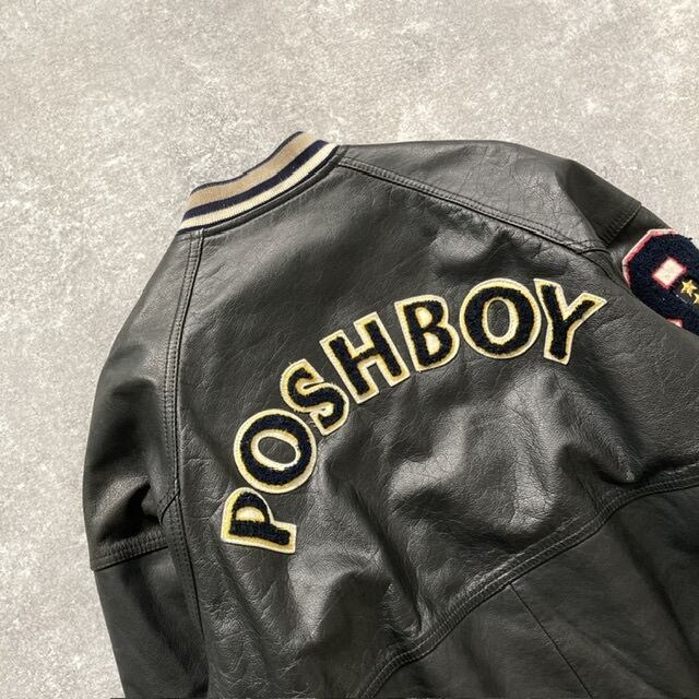 【POSH BOY】 ポッシュボーイ オールレザー スタジャン ブラック 牛革