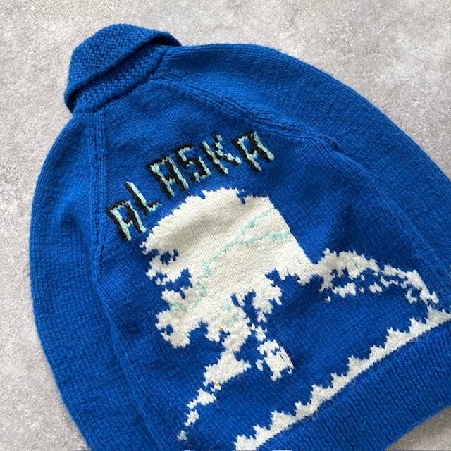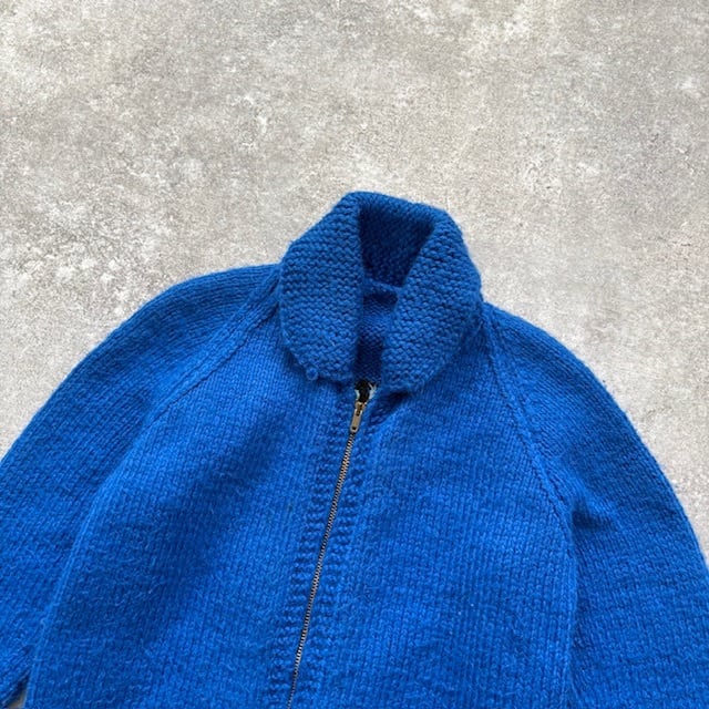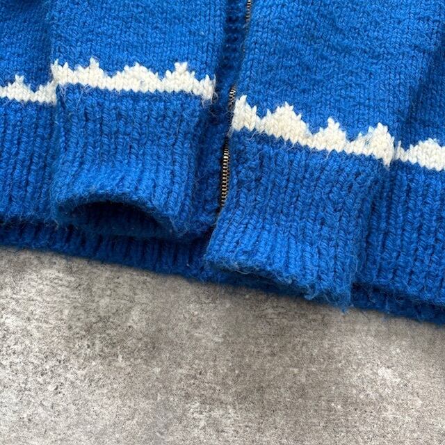 【Vintage】ALASKA アラスカ カウチンセーター 50s ヴィンテージ ニットセーター ジップアップ 青 タロンジップ COWICHAN