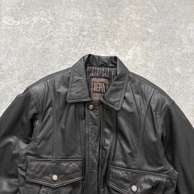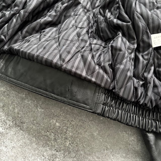 【LA PIEL】ラピエール 80s A-2フライトジャケット レザージャケット ストライプ キルティング裏地 黒 ブラック 昭和レトロ 短丈 Y2K (M)