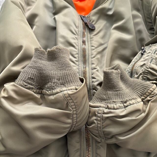 U.S.アルファインダストリーズ社では表地にフライトナイロンサテンを、裏地にウール58%、コットン42%のウールパイルを使い、1968年モデルを当時のミルスペックのままに復活しました。