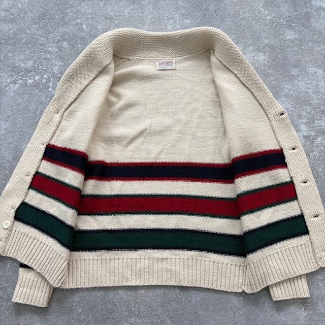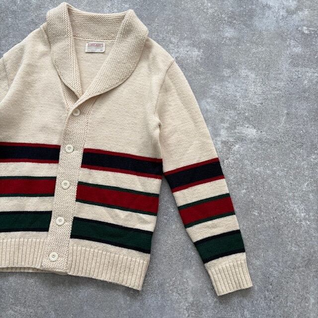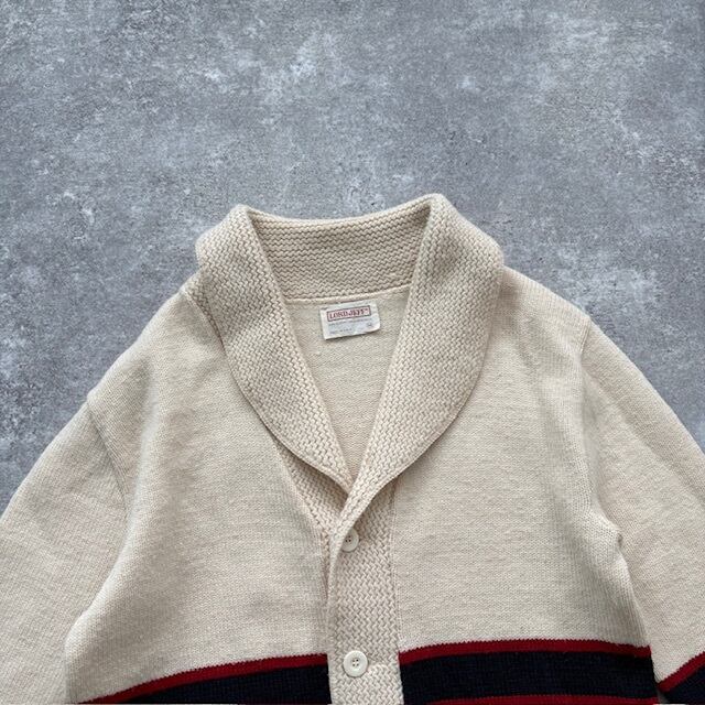 【LORD JEFF】ロードジェフ 70s ショールカラー カーディガン USA製 ビンテージ ヴィンテージ 70年代 アメリカ製 ボーダー柄 Made in USA