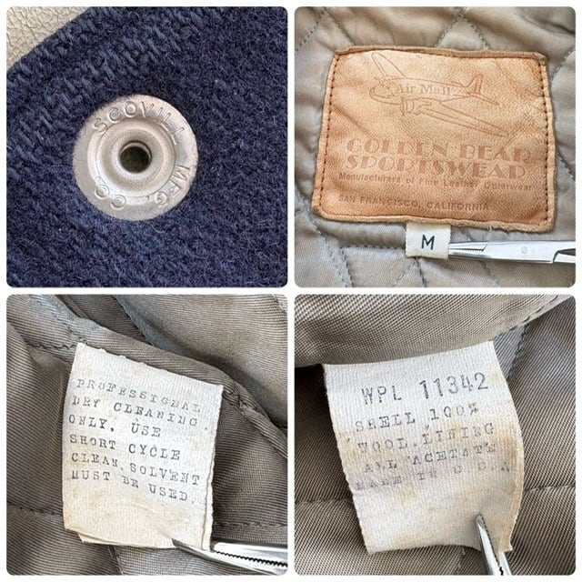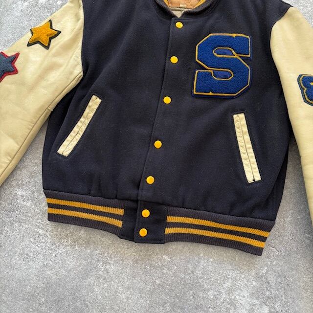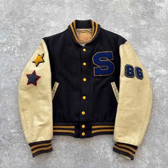 【GOLDEN BEAR】ゴールデンベア スタジャン スタジアムジャンパー バーシティジャケット 80s 80年代 USA製 飛行機革タグ レザー袖 袖革
