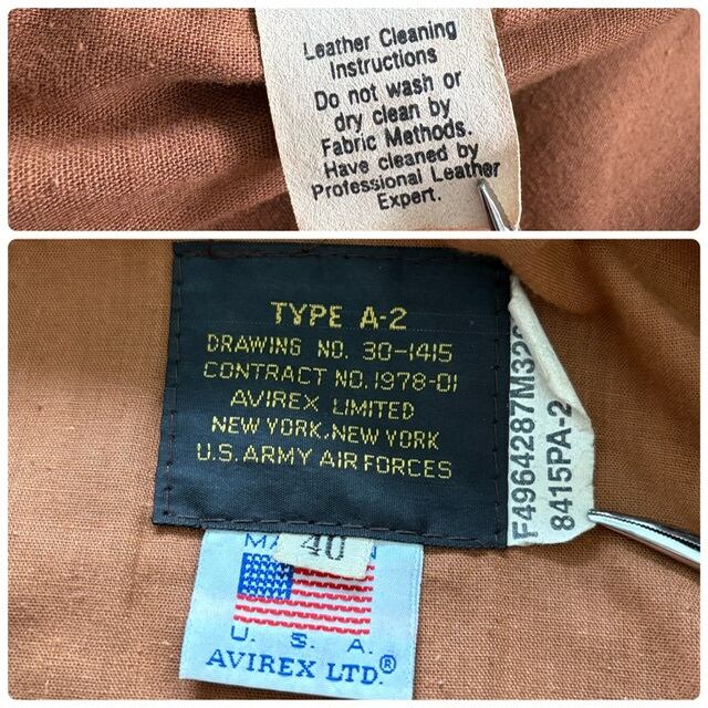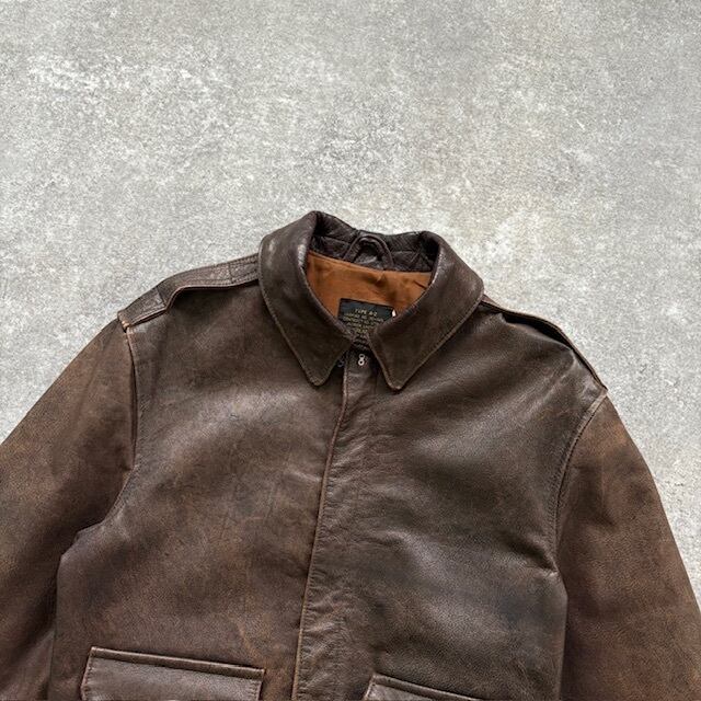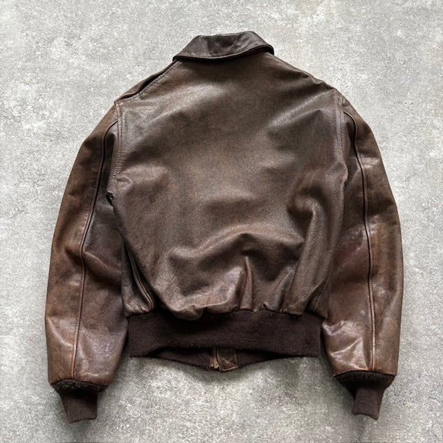 【AVIREX】アヴィレックス A-2 フライトジャケット レザージャケット USA製 スコービルジップ 70s 70年代 アメリカ製 本革 ブラウン (40)