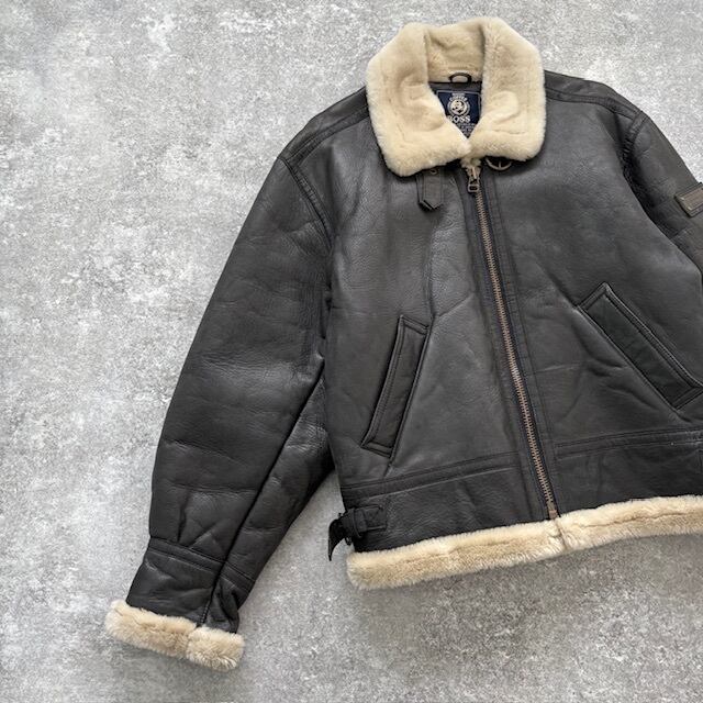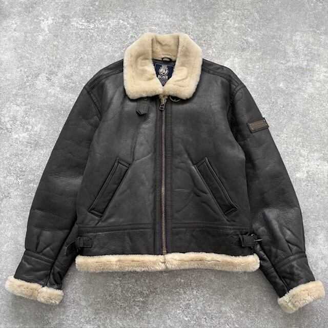 【SUNTORY BOSS】非売品 サントリー ボスジャン B-3 フライトジャケット レザージャケット ミリタリージャケット 牛革 ブラック 黒 (M)