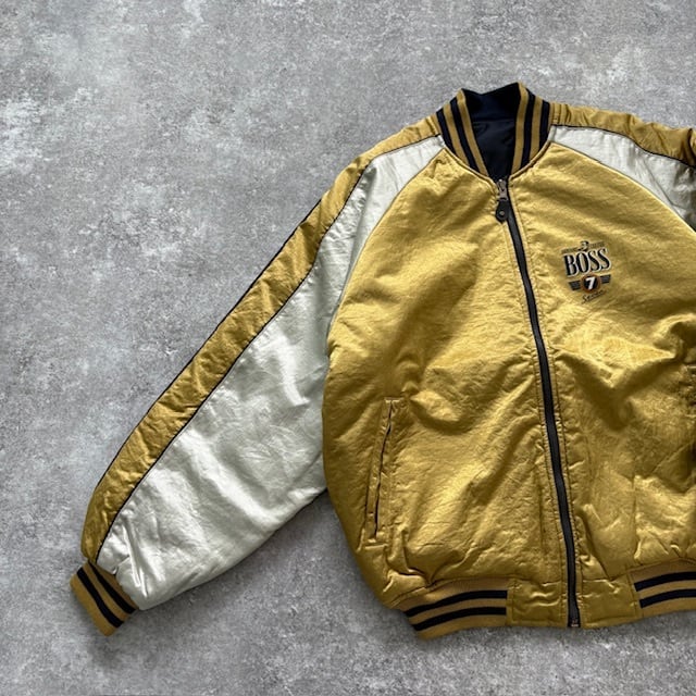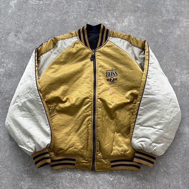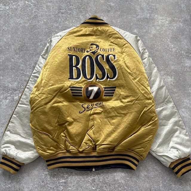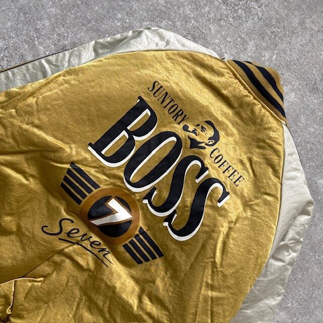 【SUNTORY BOSS】サントリーボス ma-1 フライトジャケット サテンスカジャン リバーシブル 非売品 ボス7 ゴールドプレート ネイビー SCB791