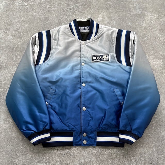 【SUNTORY BOSS】サントリーボス 非売品 サテンスタジャン スタジアムジャンパー バーシティジャケット リバーシブル グラデーションブルー