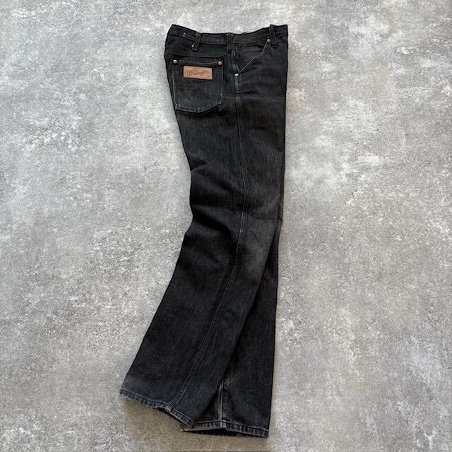 【Wrangler】ラングラージャパン期 先染め ブラックデニムパンツ 90s 90年代 ブラックジーンズ BLUE BELL レザーパッチ M1219-19 黒 (31)